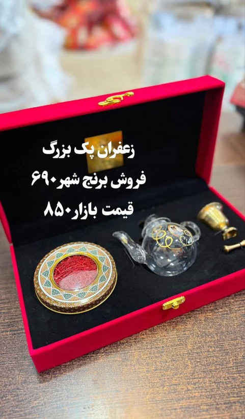 زعفران نگین صادراتی قائنات در پک های زیبا همراه قوری و هاونگ